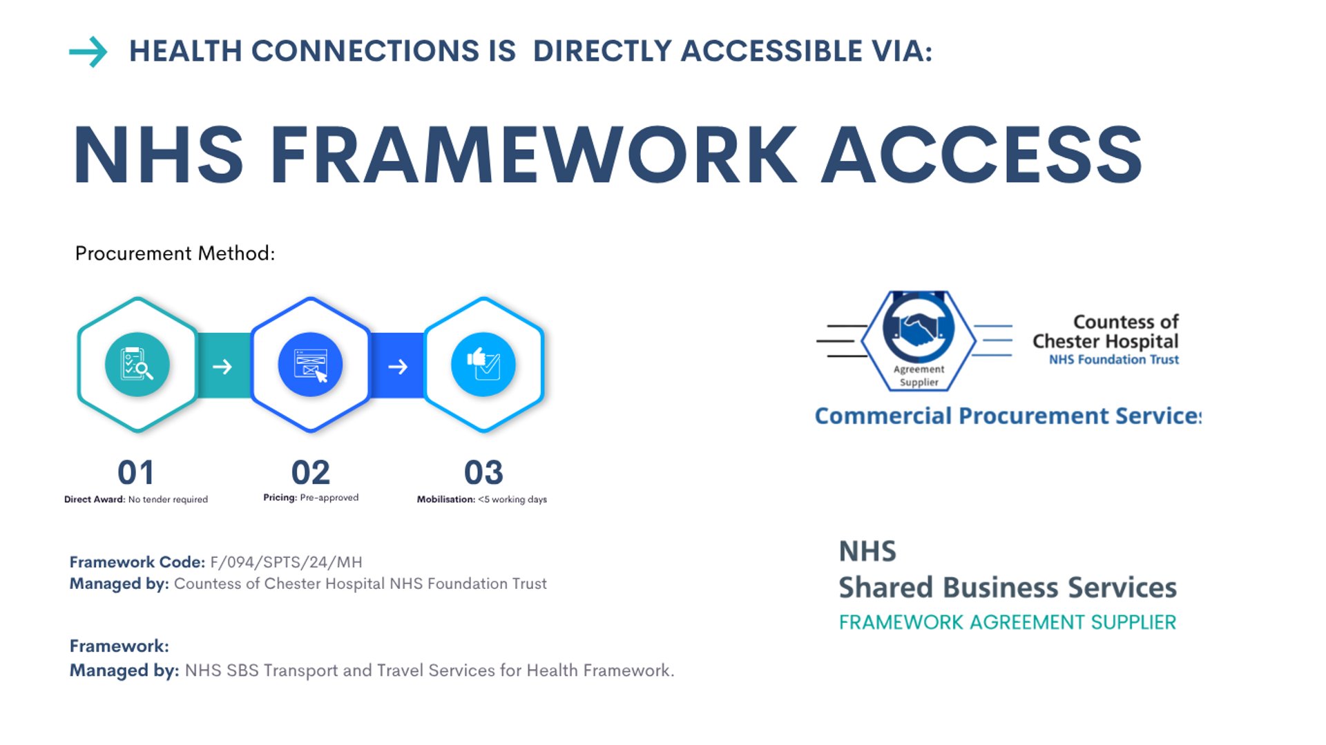 The service covers both emergency and scheduled transfers, operates 24/7/365, and is structured to meet the highest standards for clinical governance, audit, and reporting. Health Connections is accessible via direct award under NHS frameworks, enabling fast mobilisation and transparent, pre-approved pricing for commissioners.